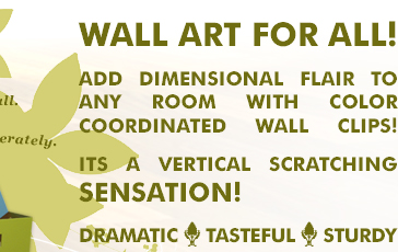Wall art for all! Add dimensional flair to any room with color corrdinated wall clips! Its a vertical Scratching Sensation! Dramatic Tasteful Sturdy 34"l x 3 1/2"w x 4 1/2" h Handcrafted in the USA Art for all!
