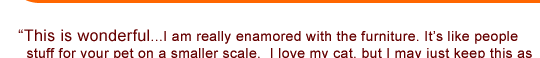 This is wonderful...I am really enamored with the furniture. It’s like people stuff for your pet on a smaller scale. I love my cat, but I may just keep this as an object of design.